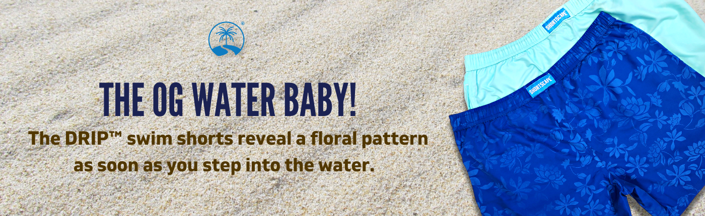 At SHORTSCAPE®, we love surprises. We've developed a water reactive fabric that changes from a solid Purple colour to reveal an all over mesmerising floral print, giving you two shorts in one!